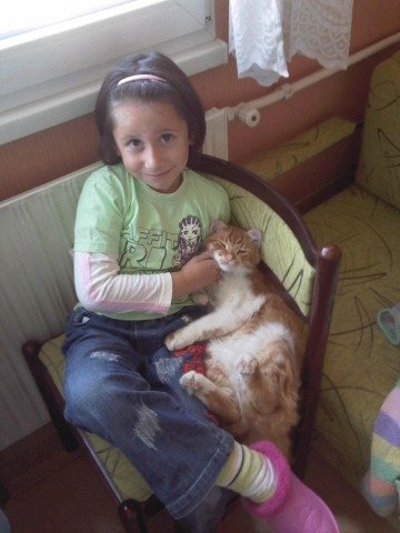 SunshineMery, мачкането на големи мекички котараци от малки сладки момиченца води до пристрастяване и до зарязване на домашните.  Joy Правилото важи с два пъти по-голяма сила, ако котаракът е оранжев с бяло пухкаво коремче  Naughty. Правилото се потвърждава и задълбочава с нарастването на котарака и на годините.  Wink Цитирам по памет отделни реплики от съботния телефонен разговор с малката ми дъщеря: "Какво ми прави Силвестърчето?" - това вместо "Добър ден!" ; "Заради тоя тъп изпит не можах да дойда да си намачкам Сисината!" ; "Много ми е мъчно! Искам си при Сисо!" ; "Ох, чак в петък ще мога да си дойда да си намачкам котенцето!" и т.н., като репликите се редуват с обилно хлипане, ронене на сълзи и подсмърчане. И всичко това защото е вече ЦЕЛИ 2 седмици в София  Crazy ! И не е бебе - на 21 е, ама пуста му и лИбоФ котешка!  33uu smile3544 Ей това ви чака!  Laughing