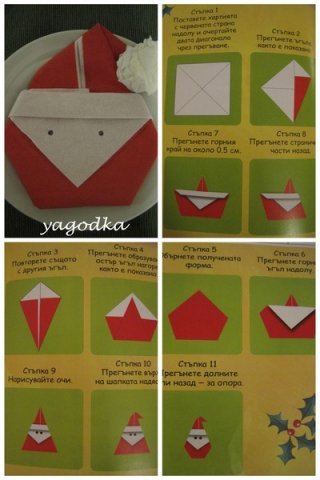 Ето и няколко клипчета за сгъване на коледни салфетки: