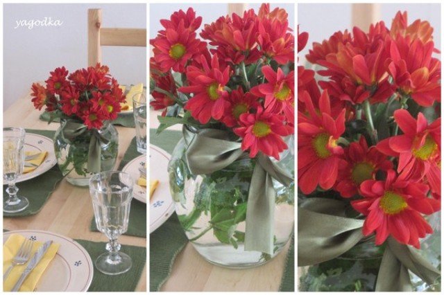 Ягодка, панделката вързана на вазата е много идейна. Нали знаеш, че съм фен на твоите салфетки, разглеждах ги пак най-подробно преди празника ми, за да черпя идеи.