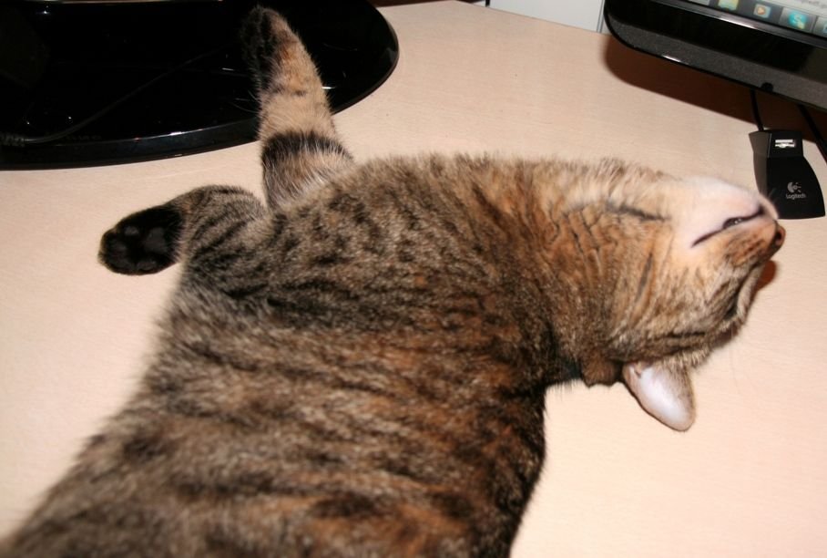 10. Котката знае, че сънят е загубено време, затова ако види спящ човек е длъжна да скочи, от колкото е възможно по-високо, върху корема му, а още по-добре върху главата му.