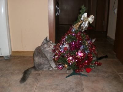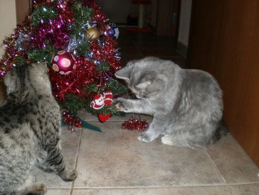 Свалих преди малко елхичката, да си поиграят мацетата. Crazy