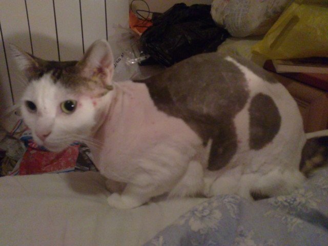 По-лесното обхващане на раните със сребърната вода беше едната от причините да реша да го обръсна. Страх го е като го пръскам, та едва успявам, но така с късата козина е много по-лесно да го намокря.