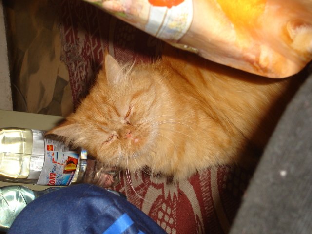 Ти ако знаеш на Биби татко и кви притеснения го тресат сега, как щяло котчето да се нахрани с тея мижави бонбонки, докторката казала по сто грама на ден!!! и той е изумен от нищожния обем на стоте грама. Дали му и мерителна чашка, за да мери точно 100. Кърши ръце от вчера и се чуди как да вмъкне още нещо в менюто и. То е ясно, че със 100 грама няма да мине, щото не мога да си оставя животинката да гладува, ама трябва малко режим и то горкото се измъчи с тия обриви!