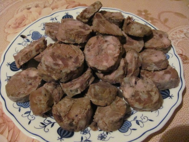 За бахура.....Кво да ти кажа......Купения няма нищо общо с домашно приготвения.....В купения слагат квот намерят и все има разни хрускащи гадости.....А аз си купувам от месарсия магазин всичко,каквото искам да сложа.....(бял дроб,черен дроб,шарено месо,сърце...Минавам месото през машинка за месо,ама едра....После овкусявам смляното със сол,бахар,черен пипер......Изчиствам отвън и отвътре червата(дебели) и с фуния пълня в червата,като завързвам краищата....После ги надупчвам,подреждам в голяма тенджера - добавям лук,морков,зърна черен пипер,дафинов лист....Варя час и половина на слабо след като заври.....После охлаждам и преди ядене обелвам.....Голяма вкусотия за който обича де.....