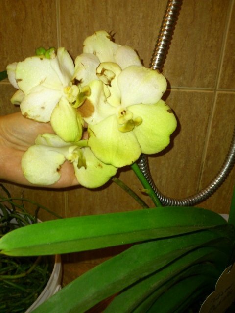Днес си взех 3 ванди по 17 лв,цветовете им са наранени от превоза и затова били намалени,иначе здрави хубави големи растения.Взех и няколко фала по 5 лв. прецъфтели.