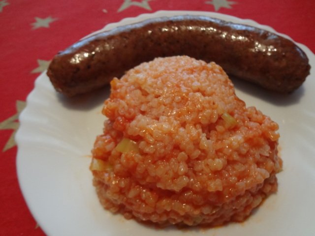 Печена наденица с ориз с праз