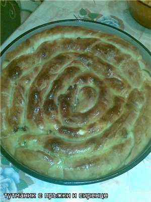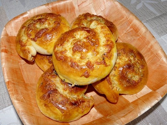 Преди три дни видях баничките с праз на Тайна, та се сетих, че и аз не съм правила скоро. Вътре ги пълня със задушен в уок-а праз, чубрица, червен пипер и смес от разбити две яйца със сирене. Тестото ми е като за хляб, намазах ги с жълтък преди печене, а отгоре малко преди да ги извадя, поръсих този път с настърган кашкавал и малко мащерка.