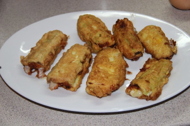 ред тиквички,ред месо,ред кашкавал и накрая пак тиквички. Прави се като сандвич и се панира Simple Smile става вкусно