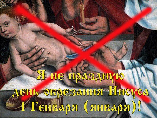 След указа на Петър I Нова година в Русия започва да се празнува на 1 януари (25 декември), на осмия ден след Рождество Христово. По странен начин „указната“ Нова година съвпада с осмия ден от Рождество Христово, т.е. с обрязването на Христос (всъщност причината не е била тази, а Исус Христос, чието истинско име е Радомир, се е родил в съвсем друго време и в друго място. Погледнете статията „Кой се е родил на Рождество?“http://narod.ru/disk/2632148001/Christmas.zip.html). Съгласно езотеричните учения в резултат на обрязването на младенеца човешката натура „се заземява“ и престават да работят двете долни чакри. Съгласно други мировозренчески утвърждения обрязването на иудеите в младенческа възраст понижава нивото на духовната организация на личността до човек, управляван от средствата на масовата култура (човек-„зомби“, човек-„биоробот“, човек-„животно“) и от равината.