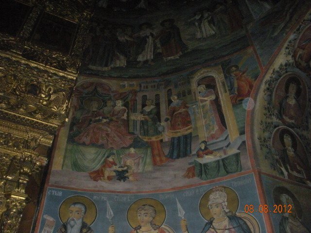 Например в Рилския манастир отдясно до олтара има фрески - малко по-нагоре е изображение на Мария и новородено й бебе в ръцете й, а при нея идват "влъхви" - кралски особи. (не можах да направя тази снимка. Там е тъмно, а аз нямах подходяща техника).