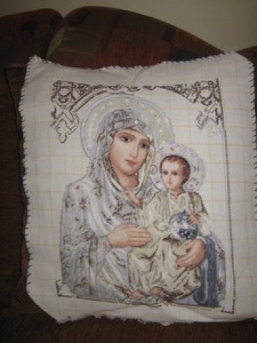 Но най-вече искам да се похваля с най-новата ми гобленарска придобивка, с която си е истинска песен да се шие! Вместо да подпирам гергефа на масата, тя си върши идеално работата, че и място за схемата намерих!  Joy