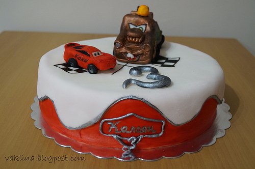 Ваклинче, тази тема ми е вече ултра мега изчерпана и смятам да преустановя направата на подобен род торти. Твоята е  много изчистена, което ми харесва, но по колите определено има какво да се изчиства. Матю е малко със страховит поглед, а той всъщност е един добряк. Абе като се загледам - тортата ми харесва на пръв поглед и това е важното, защото вярвам, че Калоян си я е харесал и познал кои са симпатягите върху нея.