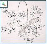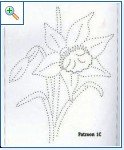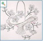 шошкамошка-когато бродирах с изонит събирах схеми ,та от тогава имам и на това което търсиш.На нея ясно се вижда през колко дупчици трябва да бродираш.Най напред оформяш горната част на кошницата.Отбелязала съм с черни цифри хода на въртене и така до последната дупка.След което пристъпваш към оформяне на долната /с червените числа/.Този красив ефект се получава именно с наслагване на конеца.Аз ти казах че ползвам лъскав конец ,тип крейник ,който съм си купила от галантерията .Струваше тогава 1лв и прилича на ибришим по форма.С ламето на ДМЦ се работи трудно, този върви леко и придава много блясък.