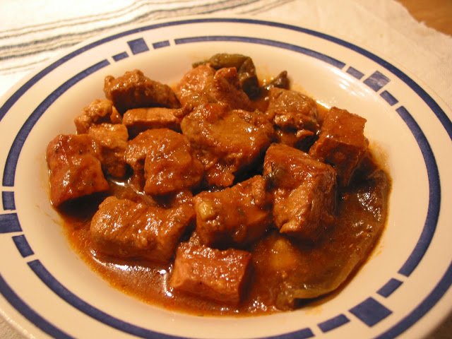 В същата мазнина запържвам 2-3 глави нарязан на по- едро лук и после малко червен пипер.