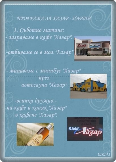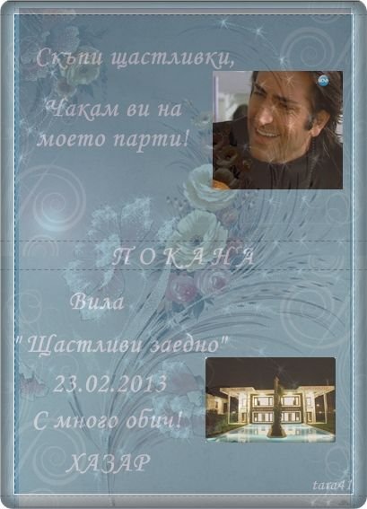Тара, първата покана я одобрявам. На втората образа на Хазар не е ясен. Програмата е  Peace.