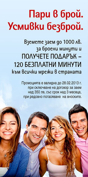 | Кеш Кредит е компания предоставяща бърз кредит от 100 до 1000 лв. за период до 12 месеца. Кандидатстването става онлайн, във всички магазини на Мтел или офиси на Кеш Кредит, без никакви такси. Предварително получавате ясен и фиксиран погасителен план,от който може да се информирате за размера на вноските, според избрания от вас срок и сума. Одобрение получавате до 6 минути с SMS на мобилния си телефон, след което можете да усвоите сумата в брой. За да кандидатствате, е необходимо да сте над 21 години и да предоставите валидна лична карта. Кеш Кредит предоставя възможност да погасите предсрочно кредита си, ако пожелаете. В този случай заплащате лихва само за времето, през което сте ползвали кредита. Ако сте клиент на Мтел с договор над 1 година, можете да кандидатствате за Кеш Кредит във всички магазини на оператора. Възможността да вземете бърз кредит в брой от мрежата на мобилния оператор е уникална. С нея получавате и удобството да заплащате месечните си вноски със сметката за телефон. Ако за вас е по-удобно, можете да кандидатствате и онлайн на www.cashcredit.bg, като попълните електронно искане за кредит. За да се гарантира вашата сигурност, след одобрение по интернет, сключването на договор за кредит и получаването на сумата в брой се случват единствено в офисите на Кеш Кредит или в магазините на Мтел. Така имате възможност на място да удостоверите самоличността си и да потвърдите желанието си да ползвате услугата. Екипът на Кеш Кредит ще се радва да ви бъде полезен и да отговори на вашите въпроси в настоящата отворена тема. Също така, за допълнителна информация можете да се обадите на телефон 0700 4 22 74 или да пишете на office@cashcredit.bg. | ![]() |