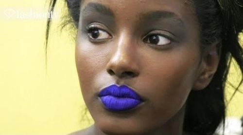 И за първи път да ми хареса синьо червило. Чак сега разбрах, то е правено за чернокожи жени Grinning Убийствено седи
