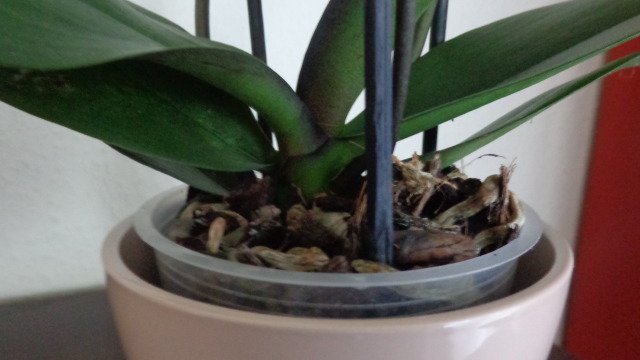 Ако става въпрос за фаленопсис би трябвало да е в прозрачна саксия и да следиш корените.Полива се когато посивеят.