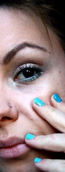 Вчера момичета, се гримирах за едно излизане - неутрален цвят на подвижния клепач, с потъмняване на коста и едно такова ментово-тюркоазено във водната линия. Ей, Бога ми, щях да ослепея  ooooh! То не беше сълзене, не беше рев... Едните сенки се разпрашиха страшно и ми се разказа играта  Tired