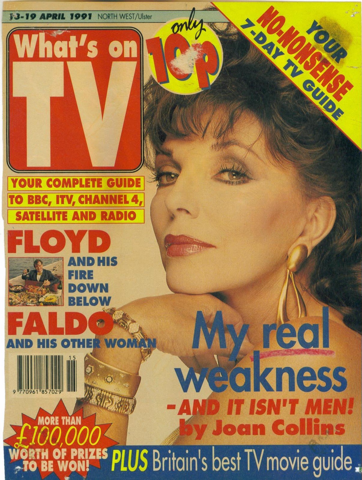 Джоан Колинс на корицата на списание "What's on TV" от 13-ти април 1991 година.
