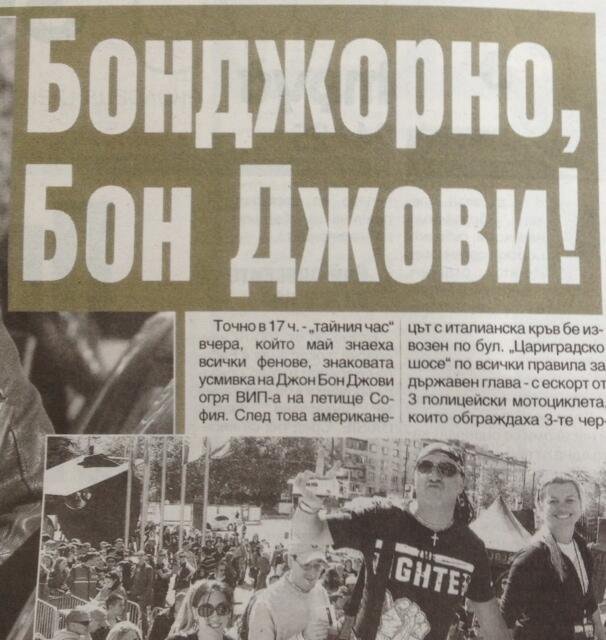 Ако аз нямам музикалната дарба да обясня защо имам точно такова усещане за музиката им, то "човекът и групата" Бон Джоуви снощи са били така любезни да се изявят пред сцена във формата на кола, която си носят от Америка. Mr. Green Твърде красноречиво, не намирате ли?