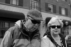 Ето този автор постявя портретите си в центъра на кадъра, но забележете, че очите на хората пак са в горната третина (не са в абсолютния център на снимката) Тъй като са на средата на улицата, има симетрия от пътя, от сградите. За това са и въздействащи.