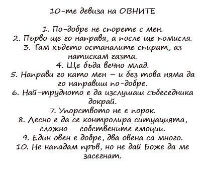 А девизите...за мен лично отговарят само някои...3,4,5 и 10. Споря до дупка, само когато съм убедена, че съм права...ама наистина до дупка hahaha А виж, акъла няма да ми дойде, ако ще да стана и на 70 hahaha