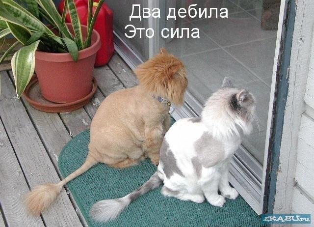 Аз ли прекалявам с креативността  Embarassed или идеята е, че котката е получила нов облик с козината на кучето? Т.е., само една котка има в клипа. Трябва да питаме Фея.