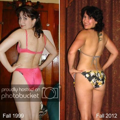 Тук има разлика от 13 години и видимо е заменила голяма част от сланините с мускули. Не изглежда въобще по-слаба, но е много по-стегната. Предполагам, че целта на фотосесиите й е да покаже това.