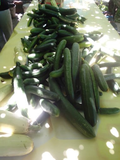 Краставиците също боледуват, все криви ги късам и листата почти опосках, но поне все още връзват масово...