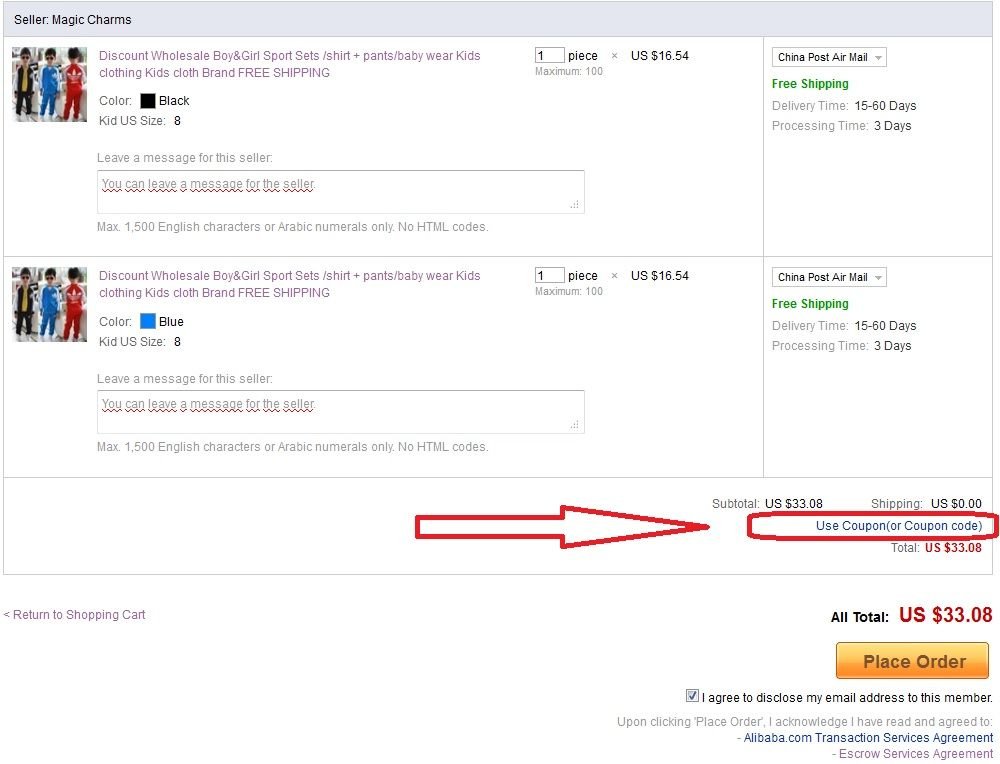 Аз стигнах до извода, че трябва поне от 1 търговец да имаш сумата, необходима да се задейства кода, за да се появи изобщо линка  с  Use Coupon(or Coupon code)