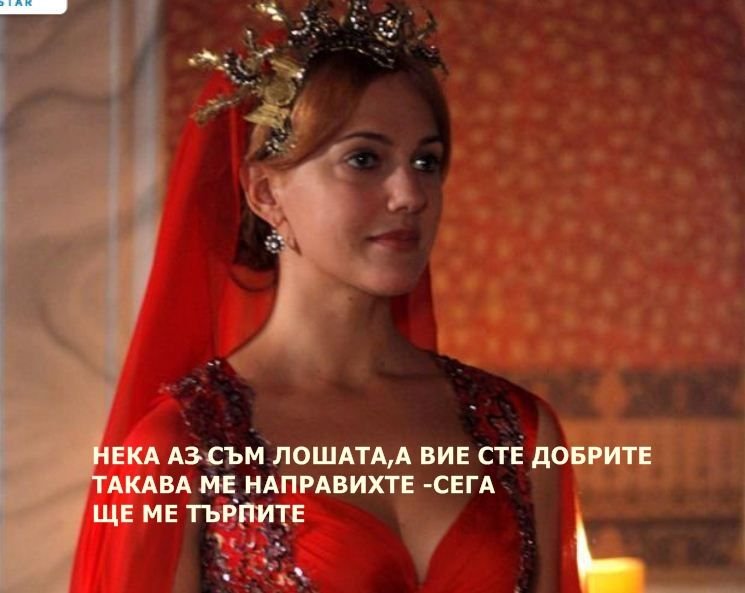 ! Относно Махидевран и Мустафа - Махидевран, както са писали някои от вас, през целия филм до сега имаше "династичен" гръб, макар да си остава робиня на Династията, а Хюрем какво ли не я правиха - то не беше горене жива, опит да я обезглавят, тровене, докато беше бременна, обвинения, обвинения и пак обвинения. Полите им целува, даже на Махидевран. Никой никога не я призна за нищо, освен султана, понякога, иначе и за него все тя пак виновна. А Мустафа, много ми харесва, много способен го показват и в историята пише, че е бил такъв, но майка му и лелите му, според които той е единственото бъдеще на династията, му отровиха живота и бъдещето. Ох, многословна станах
