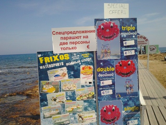 И не само него. В ляво от него също има много хубави по-малки плажчета. Но самата Айя Напа ми дойде малко шумна и пренаселена. Все пак има и доста обслужващ персонал, който живее там. Сергиите са си същите като нашите.