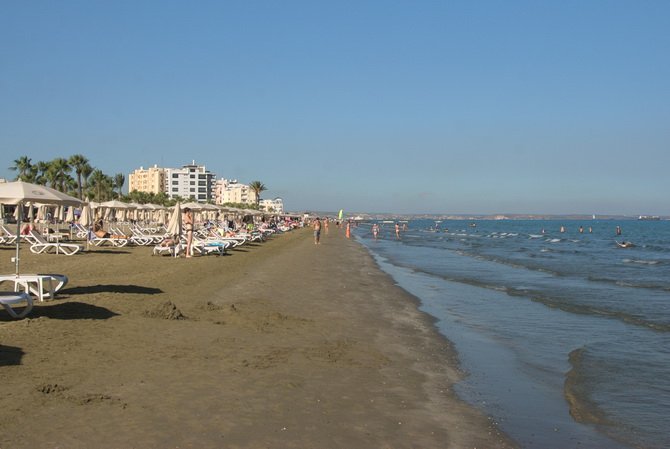 В Ларнака плажът е огромен и беше спокойно, но няма екзотика и синьо море. Ето: