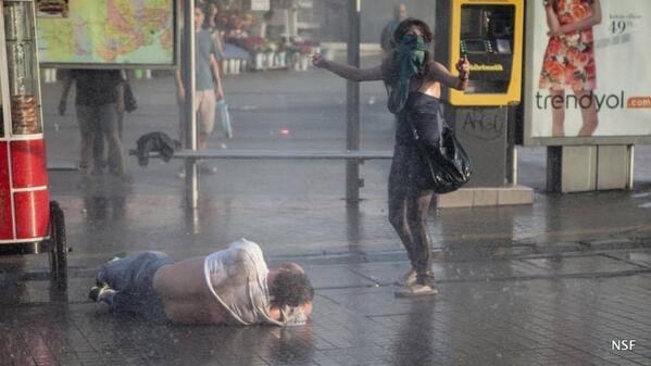 Малее,какви са тези неща в Турция,нали уж протеста беше мирен!!! За да напада полицията сигурно е имало активни подстрекатели  #Cussing out Не са хубави тези работи,щом кръв се пролива Sad дано днес вс да е утихнало.