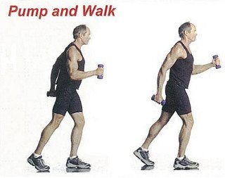 Като начало ти трябват леки гирички - половин кило на ръка ще е идеално. Тренировките могат да са в домашни условия, във фитнес зала (на бягаща пътека) или навън. Ходиш с такова темпо, че да не стигаш до задъхване. Тренировката трябва да е мин. 30 мин, поне 3 пъти седмично. Редуват се следните упражнения (на Джо Дилън), като се правят в тази последователност: