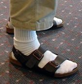 Санадал с висок ток и тънък чорап ми е невъзможна комбинация - колкото и да е съвършена извивката на обувката, кракът ми, съоръжен с тънък чорап, непрекъснато се приплъзва напред и иска да изскочи на свобода през отвора за пръстите.