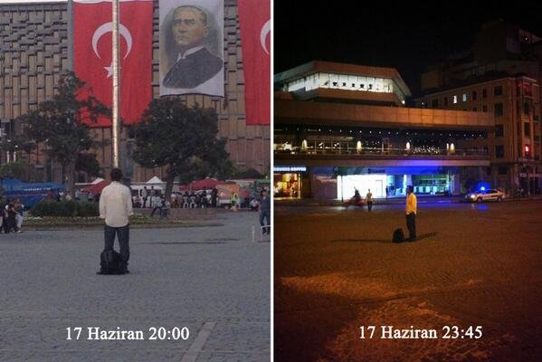 It's been 5 hours and he's still standing alone  in the middle of Taksim Square, not a move, not a word ,