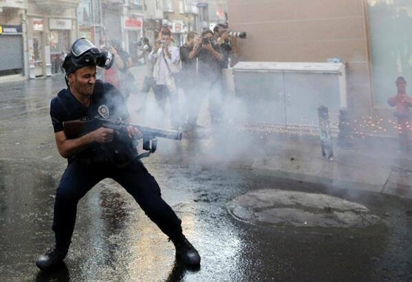 - And today, 7/8/2013, police continues to shoot tear gas directly at people rather than with the mandatory 45 degrees angle in Beyoglu.