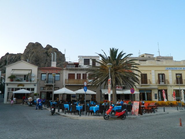 Ханиоти е друго- вечер по улиците много хора. На плажа също. Към грая на града има един бийч бар- Милос. В средата бяха разположили големи възглавници, младежите много се забавляваха. Ние с децата се разполагахме доста по-встрани, където имаше достатъчно място за децата, поясите, та даже и за рибаря.