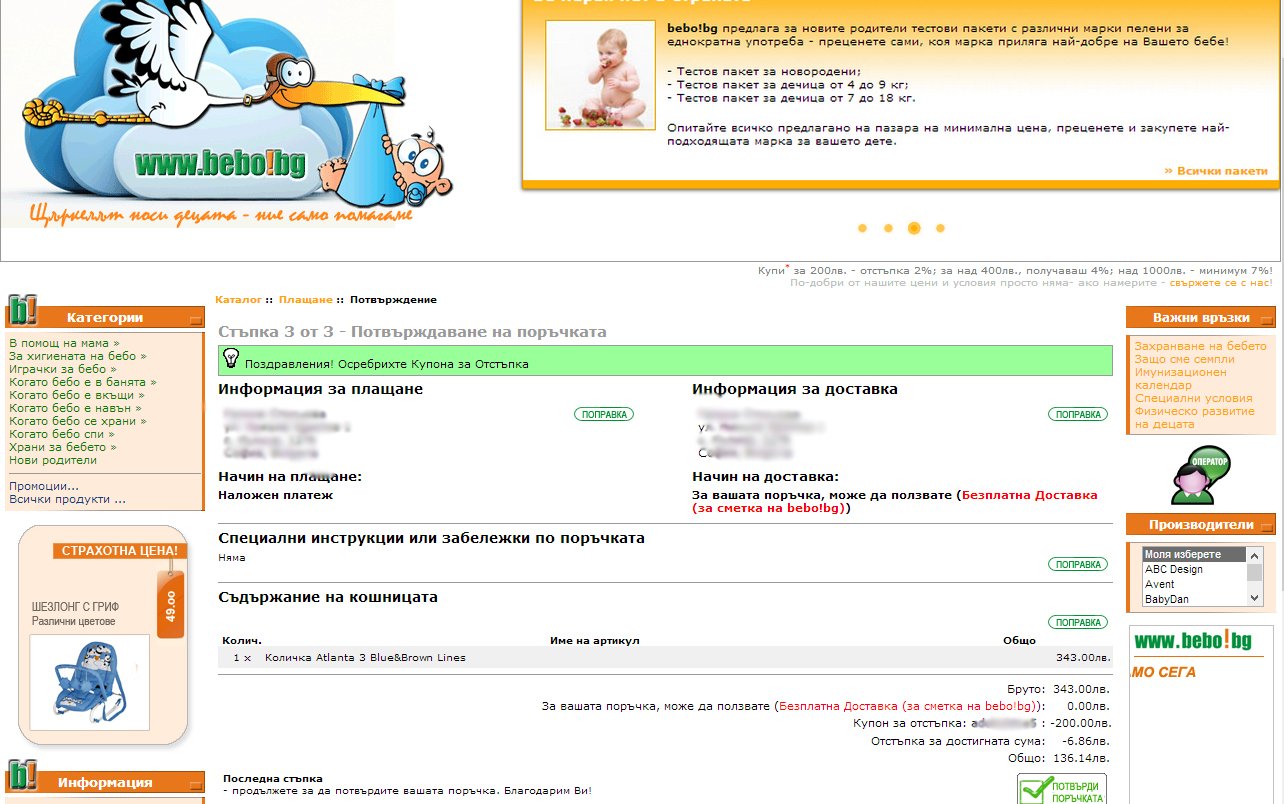 Аре - да се свършва мойта драма Simple Smile Не стига, че ми осребриха купона за 200 кинта, ами и ми дадоха отстъпка за цена Simple Smile Мисля - добре е - за 136 лв. получавам триколка за бутане Simple Smile