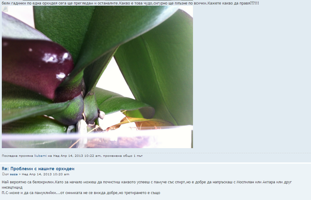 орхидейте ми са хванали въшки. Ени такива бели и стават като мъх. Убиват ми пъпките