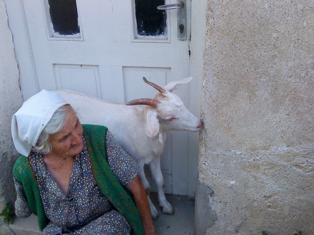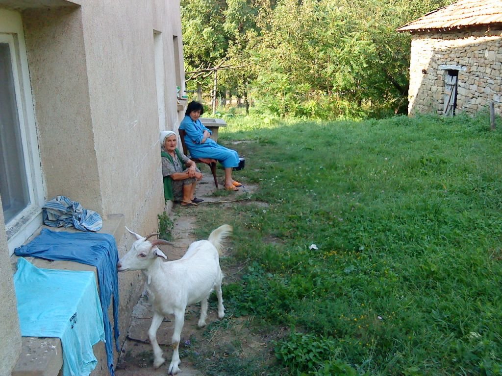 Баба Васа (със забрадката), гордата собственичка на козата, и баба ми са седнали пред къщата. Баба ще ми се кара, ако разбере в колко неугледен вид я показвам из интернет Laughing Има оправдание обаче, тогава правихме основно почистване на къщата Grinning