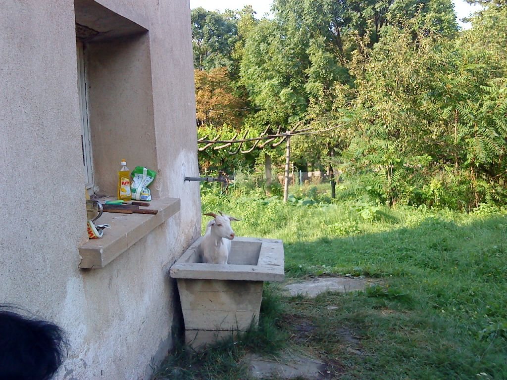 Понеже не бяхме си ходили от дълго време, падна голямо чистене и после бяхме метнали някакви парцали да съхнат навън, а козата реши да пробва как са на вкус Mr. Green