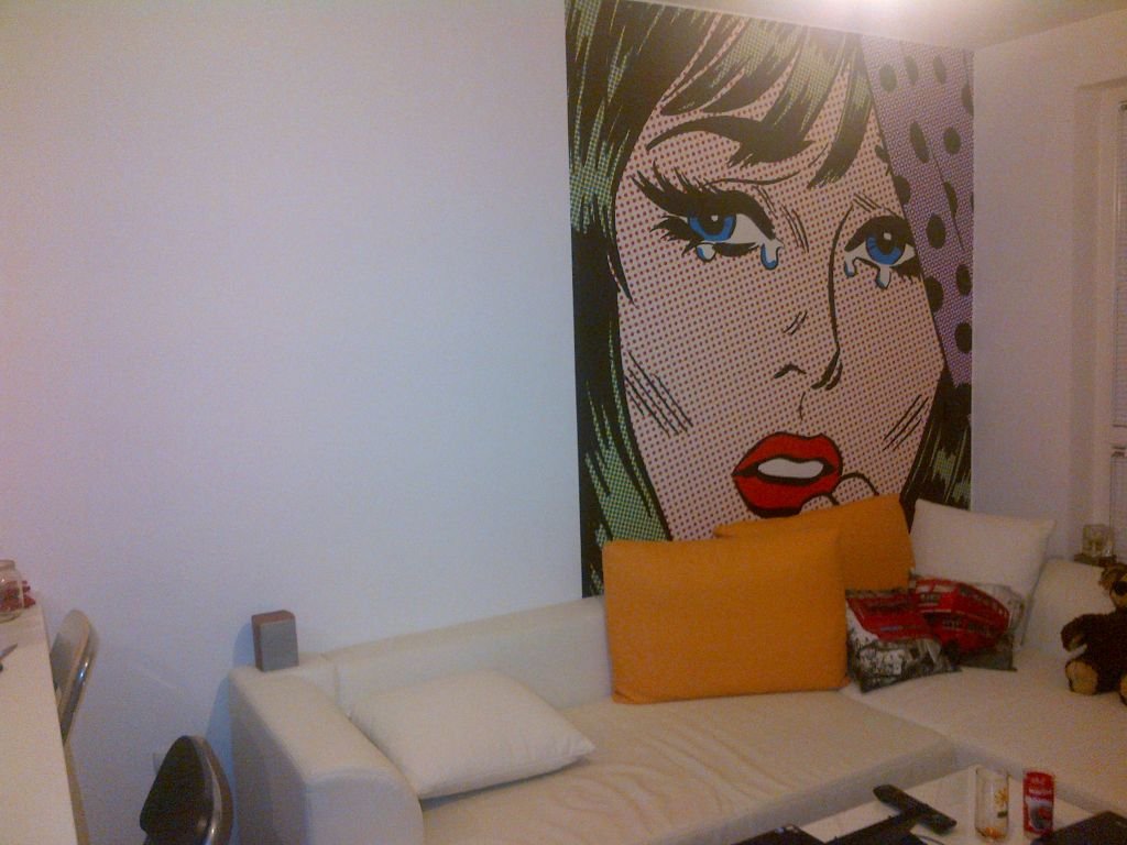 Аз съм "за" британското синьо. Всичко в този апартамент е поп-арт, така че няма да му навреди.