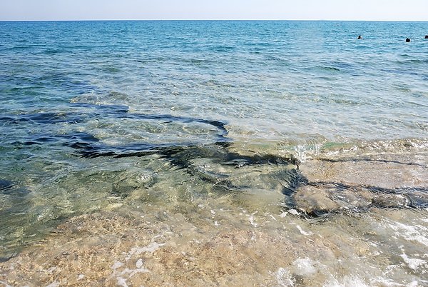 На Тасос има същите каменни плочи, но не са ерозирали и ги "виждаш" чак като се изпързаляш по тях. Сливаха се от пясъка на брега и водата. Това от към източната част.