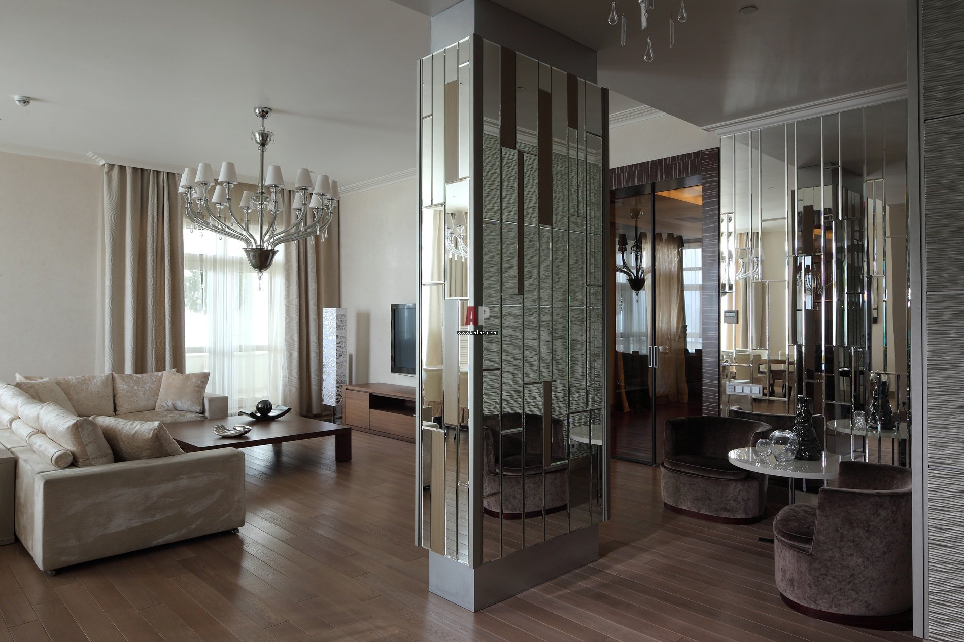 Имам нужда от мнение. В дилема съм. Имам една грозна носеща колона в центъра на трепезарията. Чудя се как да я обиграя. Как ви изглежда по-добре - огледало или облицовка?