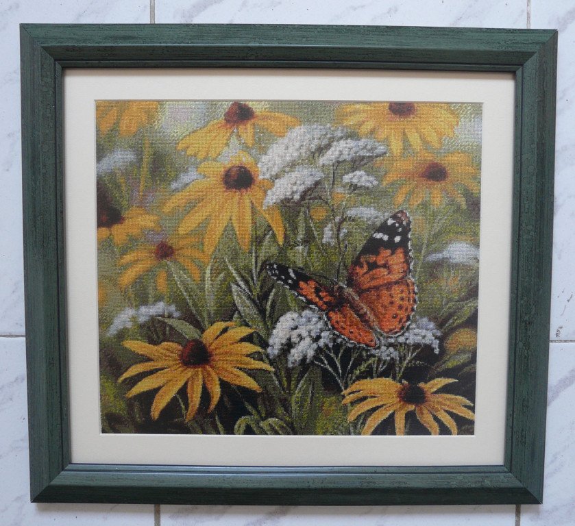 polinabg браво, и за схемата и за ушиването. За 35 цвята си изглежда страхотно, което значи че и схемата ти е много добра  Peace като жива е тази пеперуда и рамката е супер.