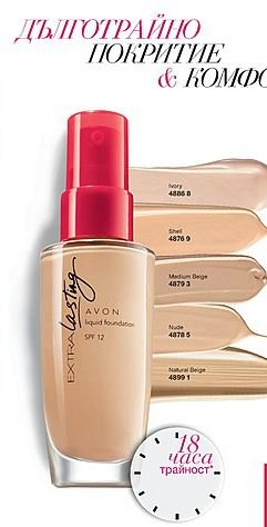 В този си пост ще изкажа изключителното си разочарование от Ейвън, с който май ще приключим всякакви отношения. Днес пристигна поръчката ми-  дълготраен фон дьо тен в цвят IVORY, бях си поръчала червилото Frozen rose и една мостра пак в цвят IVORY на успокояващия фон дьо тен. Така първо дълготрайният е в друга опаковка от показаната в каталога. Вместо в дълго шише го получих в такова, като на успокояващия. Второ нещо помпичката му не работи много и ми изцапа дрехата. И трето - цветът не е никакъв IVORY,а някаква лютеница! Оранжев, тъмен, ужасен!!!!!!!!!!!!!!!!!!!