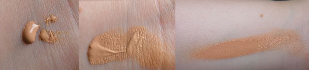 Първо една за да сравня успокояващия в цвят cream /майка ми го ползва, аз преди си взимах Nude/ и дълготрайния. Забелязва се, че адски тъмнияза мен CREAM е по-жълтеникъв и естествен, а и по-светъл от предполагаемата лютеница Ivory - направо не е за вярване.